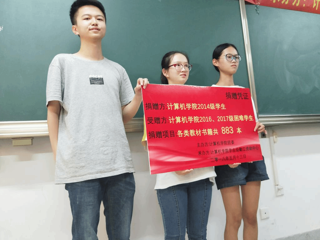 爱心捐书的活动一经发起,得到了14级全体毕业生的广泛响应,短短两天时间,共捐献各类教材书籍800余本,由勤工资助中心收集归纳并制作了捐献书单。14级黄晓雯同学作为代表向16、17级家庭经济困难学生赠送书籍,并发言鼓励他们砥砺前行,希望这些书籍能继续发挥它们传递知识的作用,不辜负学长学姐、学院、学校的期望,同时也希望这样的活动能在太阳成集团tyc522cc传承下去,完成爱心接力,留给自己一个有意义的毕业纪念。