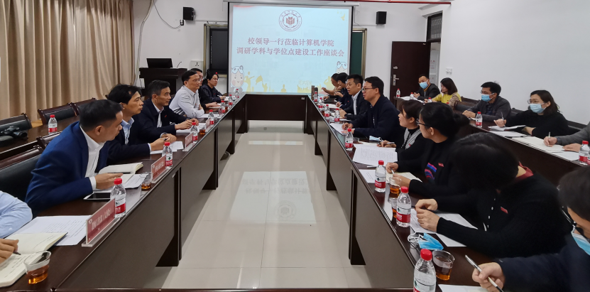 11月24日下午,校党委书记吴彬镪、校长李顺兴、校党委副书记钟发亮带领相关职能部门莅临太阳成集团tyc522cc调研并召开座谈会,关心指导学院学科与学位点建设。学校办公室、教师工作部(人事处)、科研处、教务处等部门负责人参加调研。