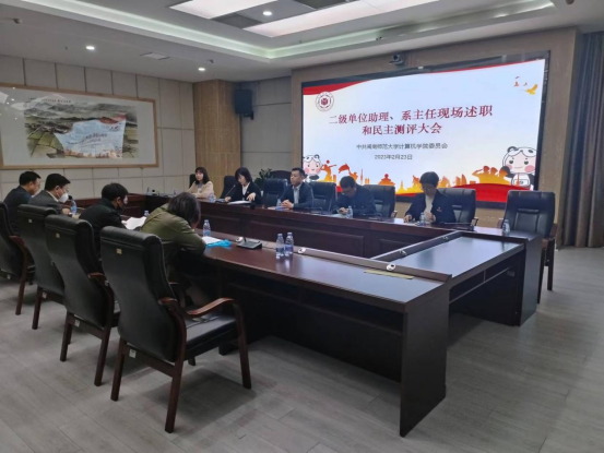 2月23日下午,太阳成集团tyc522cc在科技楼1607召开2022年度院长助理、系主任年度考核工作会。全体教职工参加本次会议。会议由学院党委副书记陈小玲主持。