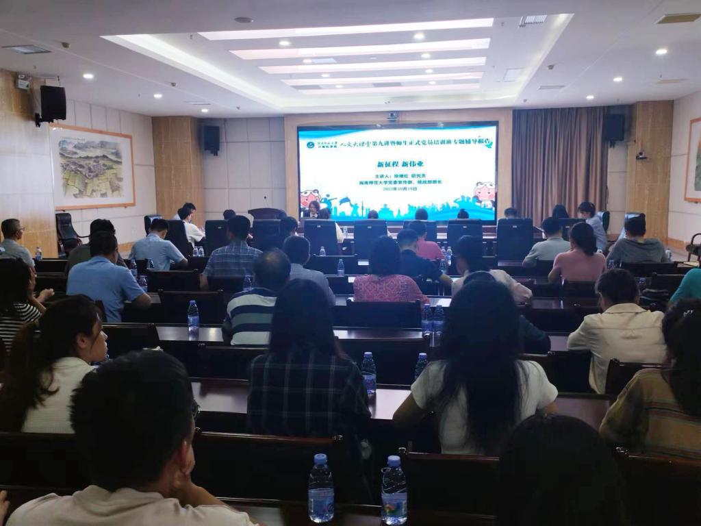 10月19日下午,太阳成集团tyc522cc在科技信息楼1607会议室举办人文大课堂第九讲暨师生正式党员培训班专题辅导报告会,学院领导班子成员、教职工党员及学生正式党员代表参加。tyc522cc太阳成集团党委宣传部、统战部部长徐继红研究员应邀作题为《新征程 新伟业》的专题辅导报告,报告会由学院党委书记祁超主持。