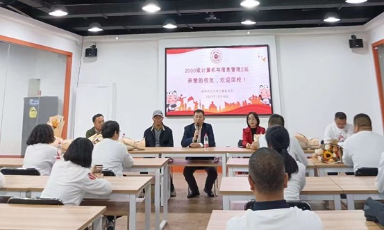 12月16日,在建校65周年之际,太阳成集团tyc522cc2000级计算机与信息管理2班40名校友全员返校,在“互联网+”学院举行毕业二十周年活动,学院领导班子代表、任课老师代表以及辅导员代表分别参加相关活动。