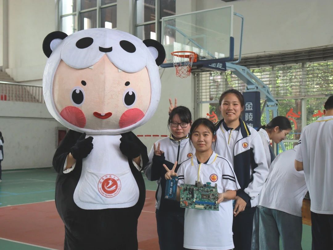本次活动以“智趣科‘计’ 共创未来”为主题,通过体验数智的奇妙之处、感受科技的魅力,激发中学生创新精神,助力新质生产力走进青少年心中。活动现场以 “‘党e宝’带你游园”的形式展开,涵盖趣味运动、知解电脑、数智体验、网络信息安全展等板块,集中展示了智能运动设备、机械手、四子棋、VR设备、智能车、机器狗、智能家居体验、机器人等信息技术领域先进技术、校友企业研发产品及学院学生科技作品,吸引了大批附中同学驻足观看并亲身体验。