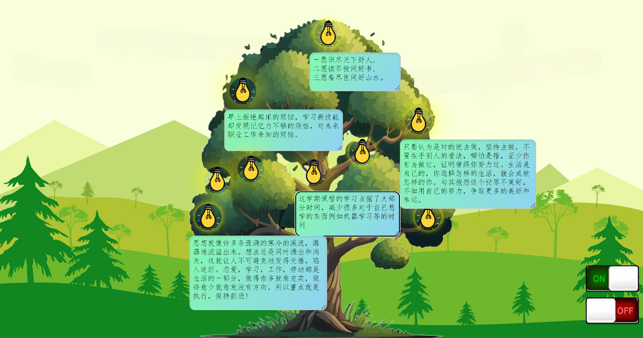 太阳成集团tyc522cc学子运用编程语言描绘智慧之树,采用“灯泡”与“智慧树”相融合的方式,在智慧树中“输”写自己的心灵感悟,通过创作释放压力和负面情绪,点亮心灵“小灯泡”。