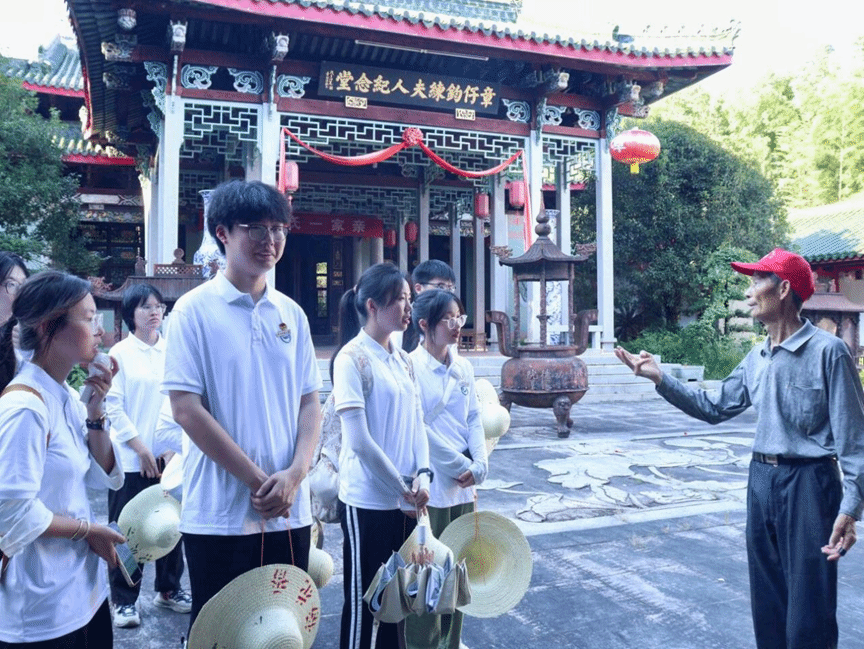 第三站,实践团前往千年章氏祖祠进行实地调研。走进章氏宗祠,10多米长的章氏家训映入眼帘,字字珠玑、句句箴言的家训,教育子孙后代知书达礼、修身立命。随后,章氏第49代传人章汉标先生向实践团成员介绍了章氏的历史故事、世代的优秀人物,以及台胞两岸章氏宗亲的亲密来往。通过介绍,实践团成员了解到章氏各地宗亲不远万里来寻根问祖,从中感受到“天下无二章,祖根在浦城”的“天下章氏一家亲”浓厚氛围,深刻感悟到了中国人民落叶归根的中华思想文化底蕴。