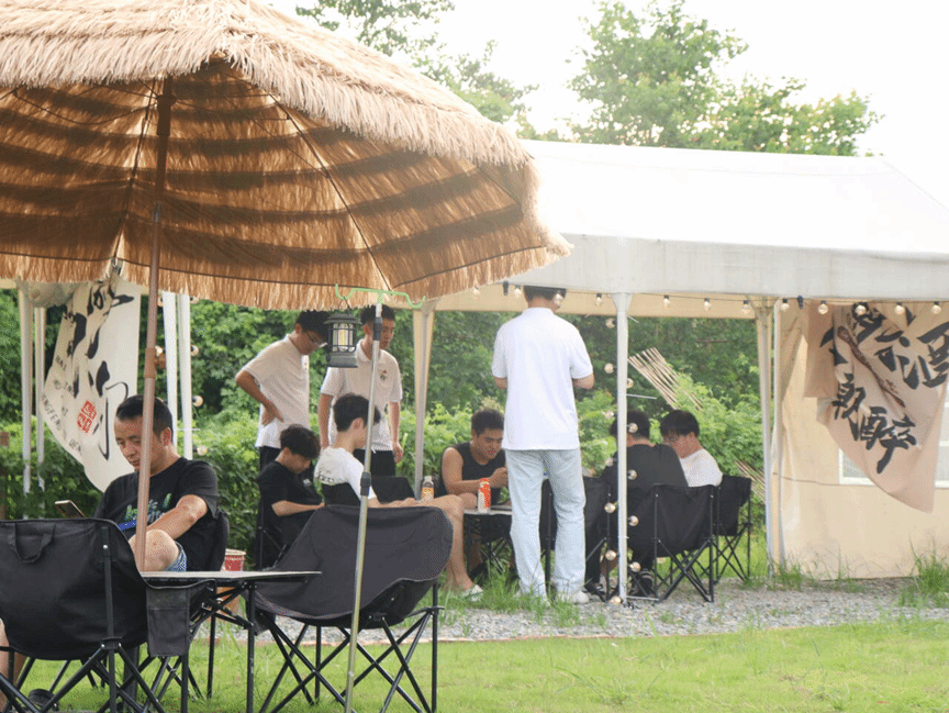 “偷得浮生半日闲,人间至味是清欢”,“半日闲”营地在万亩良田中开辟了一小块休闲场所,让旅人在风吹麦浪时节得以驻留片刻。实践团成员通过访谈或问卷等形式就莲塘镇旅游业发展以及游客的满意度和期望方向对营地的游客展开调研。