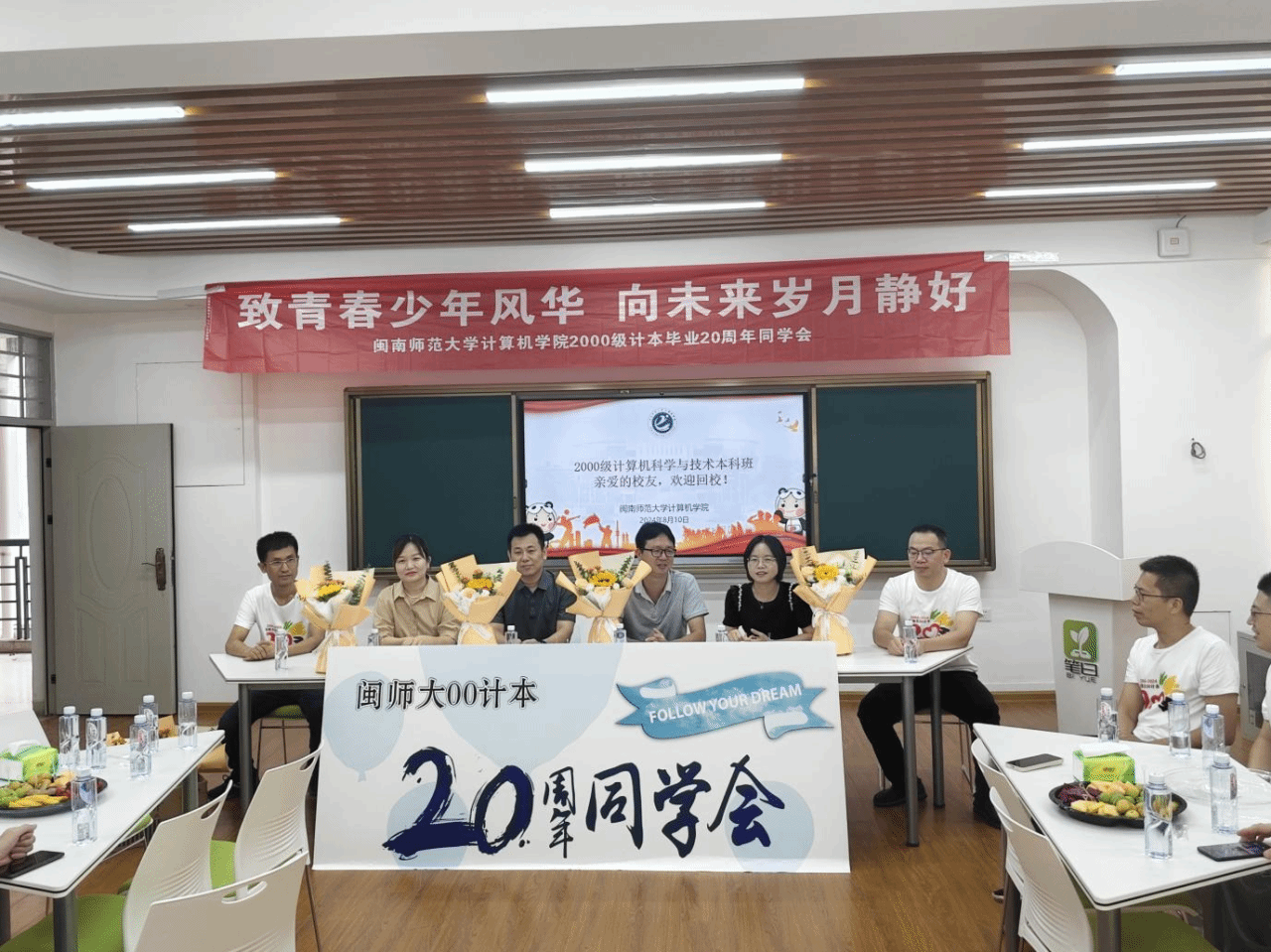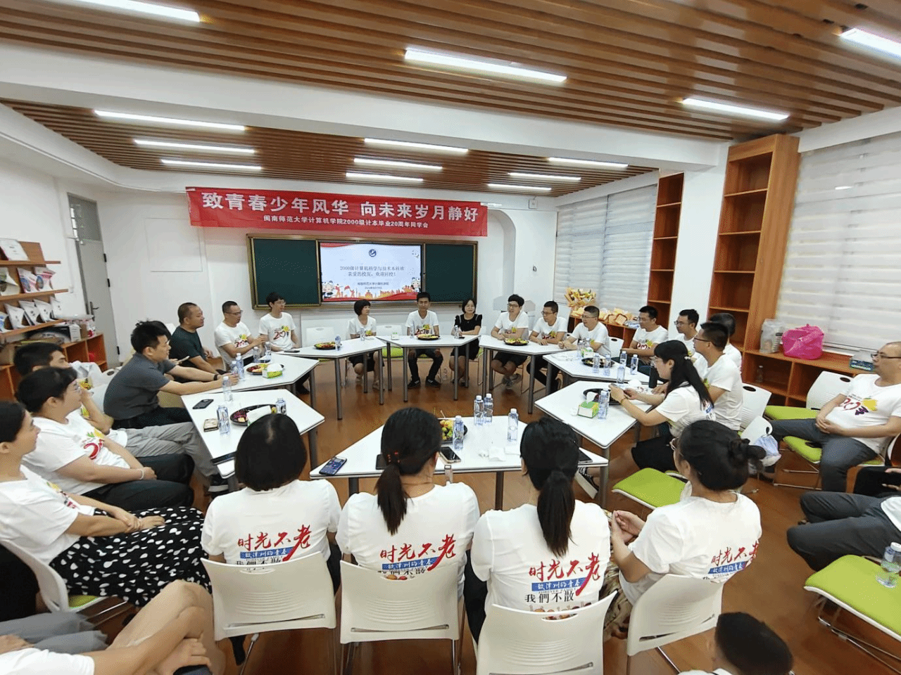 8月10日,太阳成集团tyc522cc在砺志楼223举办2000级计算机科学与技术本科班“致青春少年风华 向未来岁月静好”毕业二十周年返校活动。学院党委书记祁超,院长林耀进,校党委宣传部、统战部副部长谢斌斌,原辅导员、物理与信息工程学院党委副书记陈丽新,学院党委副书记陈小玲等教师代表参加相关活动。
