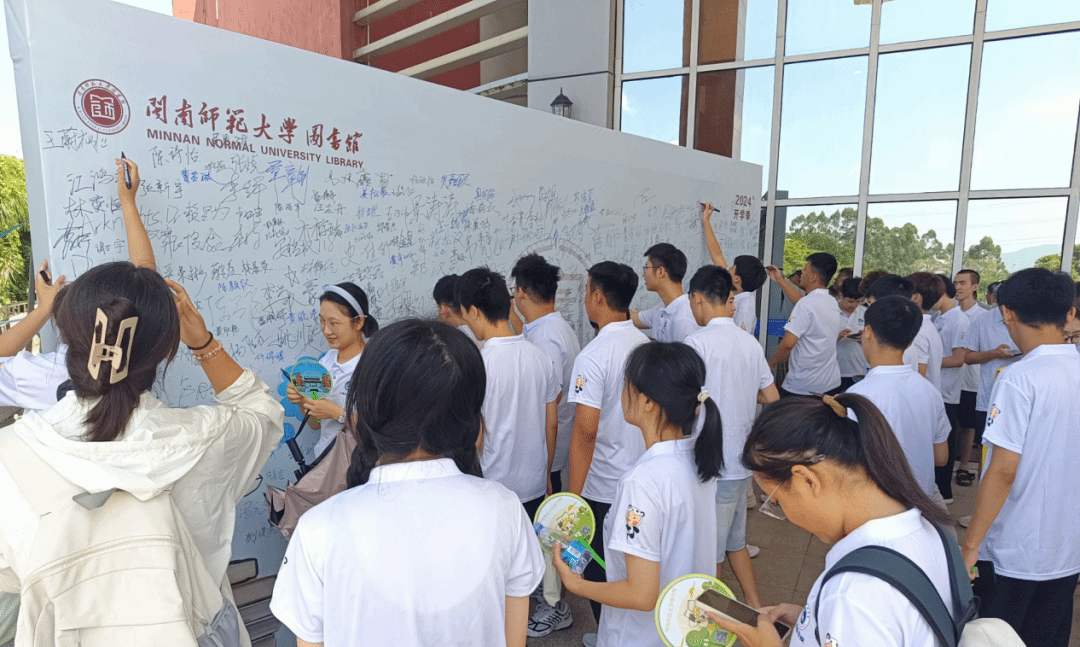 9月10日,2024级新生在图书馆讲解员的带领下参观了图书馆和校史馆。同学们深入了解了学校的建设历程和办学理念,在签名墙上郑重地留下了自己的签名。