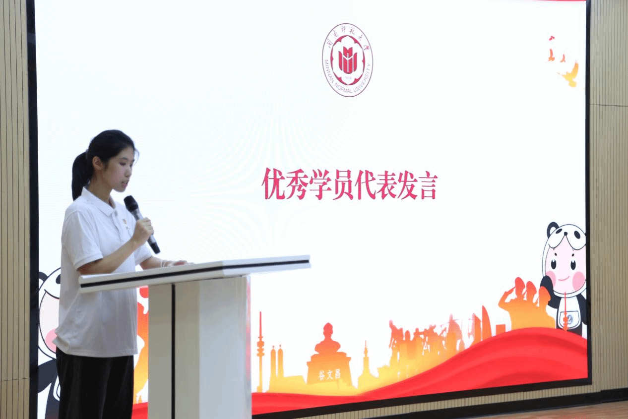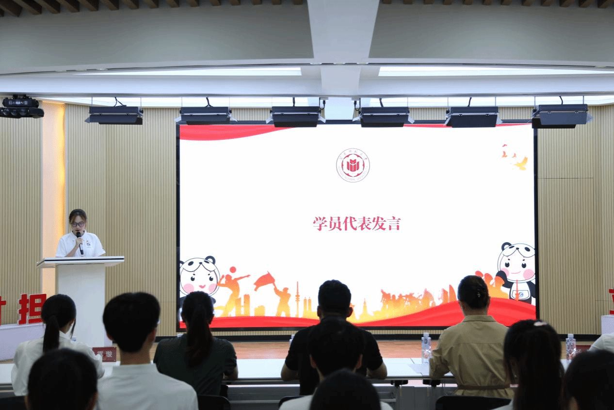 接着,第三期学员代表吴秋妮发言。她代表第三期全体成员承诺将遵守规章制度,秉承“知行合一”的原则,专注学习与实践,不断提升人文素养和专业技术能力,全面提高综合素质。