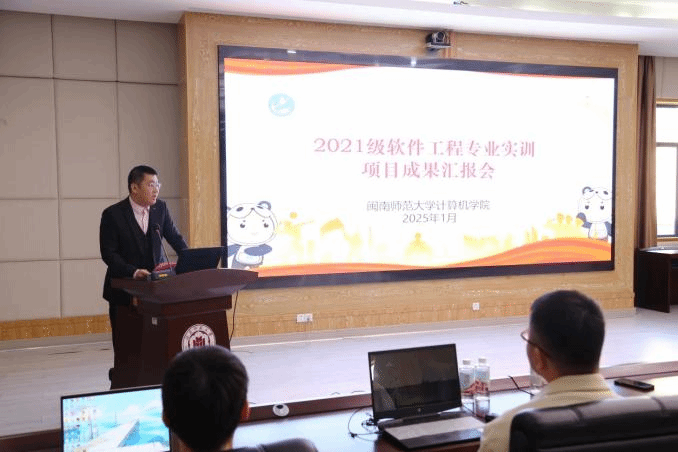 1月10日下午,我院与东软教育科技集团有限公司、福州榕智信息科技有限公司、厦门欧米克网络科技有限公司关于2021级软件工程专业实训项目成果汇报会在tyc522cc太阳成集团科技楼1607会议室圆满举行。我院党委副书记陈小玲、副院长周豫苹、院长助理王育齐和辅导员杨士杰,以及实训企业代表出席此次成果汇报会。