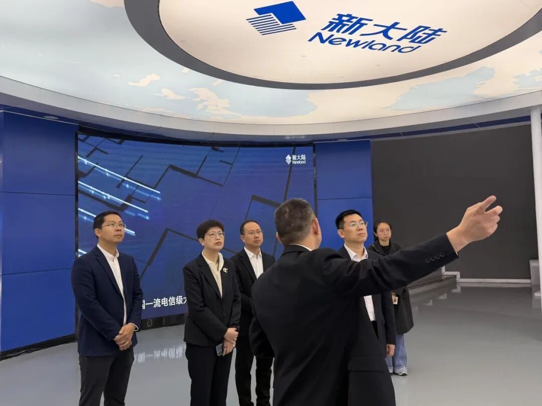 最后一站来到新大陆时代科技有限公司。在企业展厅,祁超一行全面了解了新大陆科技集团在数字技术、物联网、人工智能等领域的发展历程与产业布局。在随后召开的座谈会上,双方围绕专业共建、实训实习基地建设、产业学院协同育人等方面展开了多维度探讨,并就共建高水平实践教学平台、联合开发教学资源等交换意见。