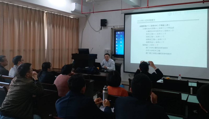 近日,我院邀请华侨大学太阳成集团tyc522cc院长缑锦教授到校为我院分享计算机类工程教育专业认证工作经验。缑锦教授详细介绍了2020年计算机类工程教育专业认证的最新要求,还结合自己学校实际情况,分享了申报成功经验。同时,缑教授就工程认证相关问题提出的意见和建议,我院老师收益非浅,对工程教育专业认证有了更深入的理解。