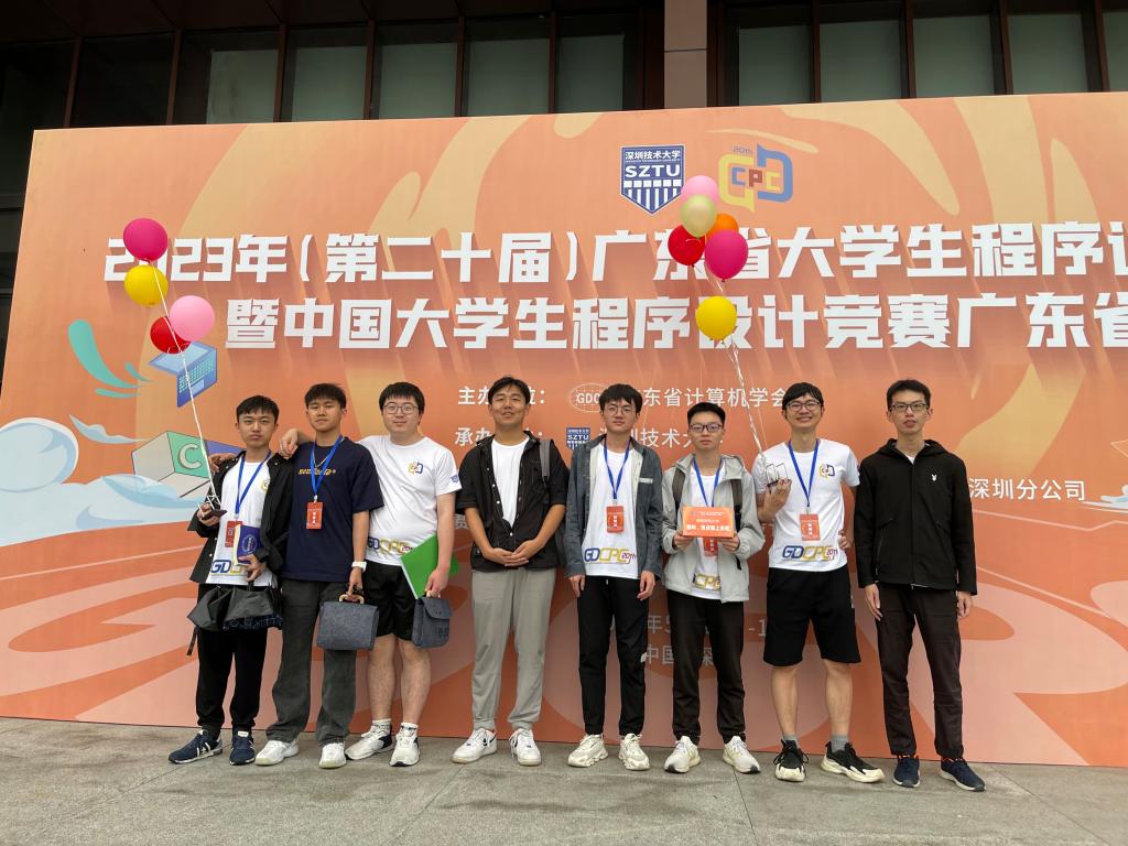 2023年5月13-14日,由广东省计算机学会主办,深圳技术大学承办的“第二十届广东省大学生程序设计竞赛暨中国大学生程序设计竞赛广东省赛(GDCPC)”在深圳技术大学隆重举办。此次比赛,吸引了来自中山大学、华南理工大学、哈尔滨工业大学(深圳)、香港中文大学(深圳)、武汉大学、华中科技大学、厦门大学、山东大学、同济大学等50多所高校242支队伍参赛。在5个小时的比赛中,各参赛队伍围绕13道题目展开角逐,每支队伍只使用一台电脑,充分考验了队员们的思维能力、编程能力和团队协作能力。我院共派出3只队伍参赛,队员们通力合作、顽强拼搏,最终斩获一银一铜。