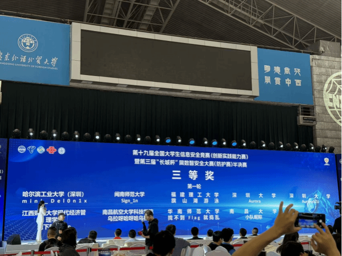 3 月 22 日,第十九届全国大学生信息安全竞赛(创新实践能力赛)暨第三届 “长城杯” 网数智安全大赛(防护赛)半决赛(广东赛区)在广州圆满举办。由我院农强老师指导,黄咏珂(2023级本科生)、李瑞(2023级本科生)、郑驿枫(2025级研究生)、邱律清(2025级研究生)组成的Sign_1n战队,荣获广东赛区三等奖。