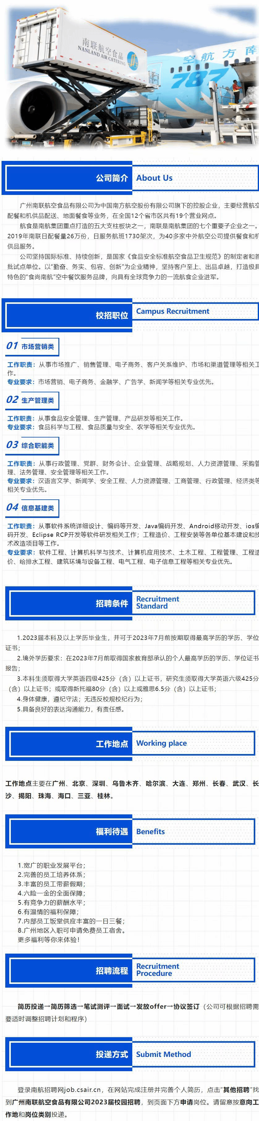 广州南联航空食品有限公司2023届校园招聘正式启动!