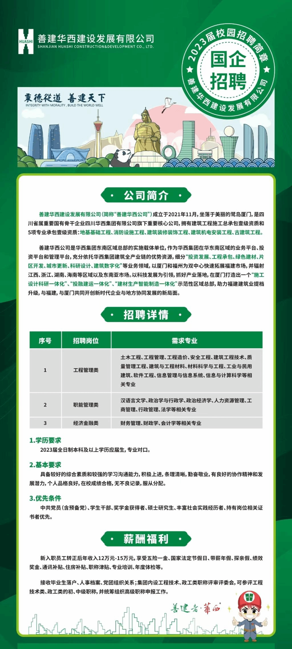 善建华西建设发展有限公司2023届校园招聘正式启动!