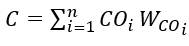 课程的达成度(C)由该门课程的多个课程目标(CO)的达成度值和权重(W)的加权求和达到,如公式4-2所示。