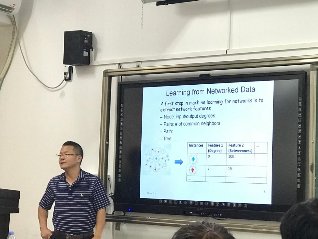 2019年7月26日上午,美国佛罗里达大西洋大学Xingquan Zhu教授应学院邀请来访,在科技信息楼北1106会议室做了题为“复杂信息网络的深度特征表达学习”的学术报告。报告会由林耀进院长主持,相关教师和在校研究生参加了本次报告会。