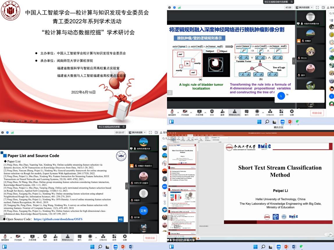 6月16日上午,由中国人工智能学会—粒计算与知识发现专业委员会主办、我院具体承办的“青工委2022年系列学术活动”——“粒计算与动态数据挖掘”学术研讨会在腾讯会议平台顺利召开。本次探讨会由学院院长林耀进教授主持,上海大学岳晓冬教授、安徽大学赵姝教授、合肥工业大学李培培教授和燕山大学尤殿龙教授四位专家先后做了相关学术报告,学院部分教师和各年级研究生积极参会。