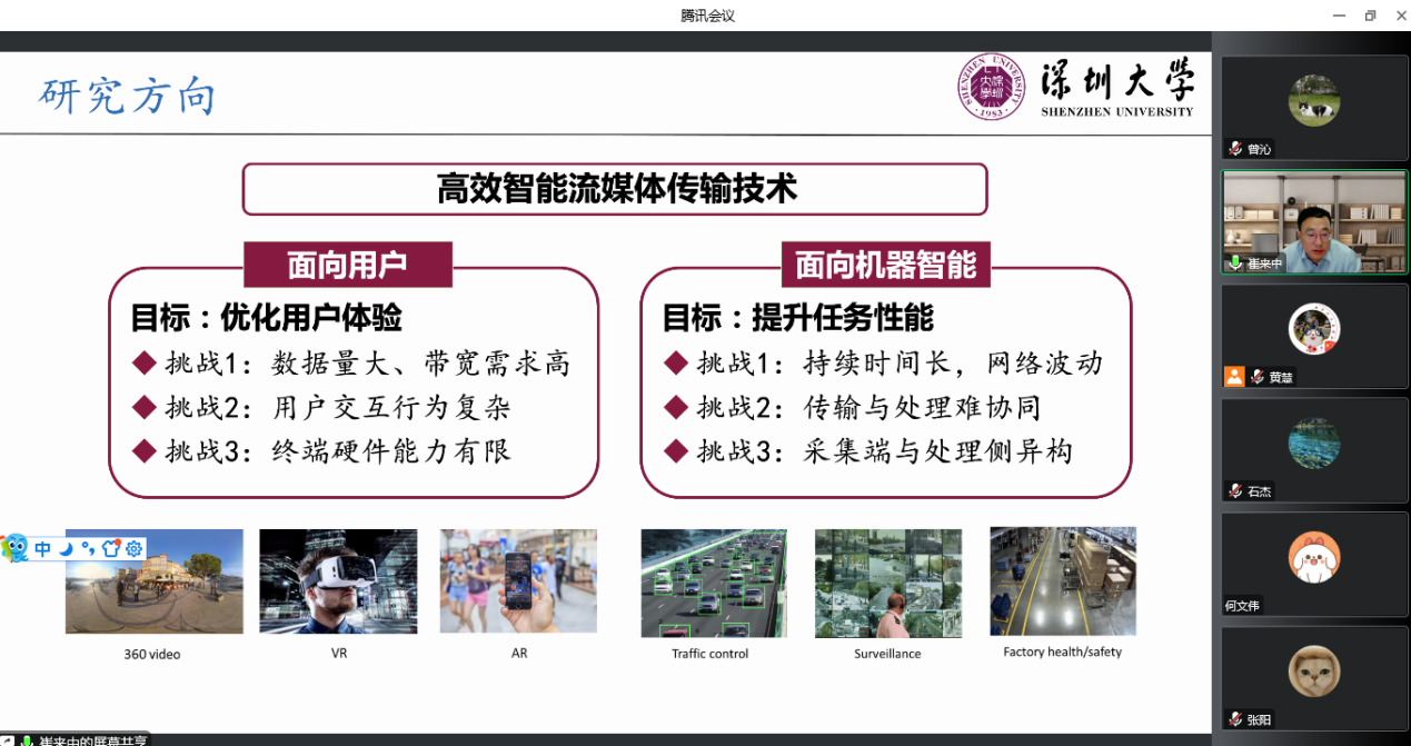 10月19日下午,深圳大学崔来中教授应邀为我院师生做线上专题报告,报告题目为“交互视频智能传输技术”,本次报告由学院黄慧副院长主持。