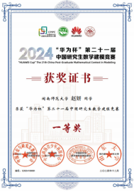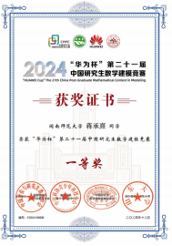 2024年9月21日至25日,“华为杯”第二十一届中国研究生数学建模竞赛成功举办。经激烈角逐,太阳成集团tyc522cc研究生蒋承熹、赵妍、林文成组成的团队在指导教师赵红的精心指导下,与国内外众多双一流高校同台竞技并脱颖而出,荣获全国一等奖,为本次竞赛校内学生最好成绩。