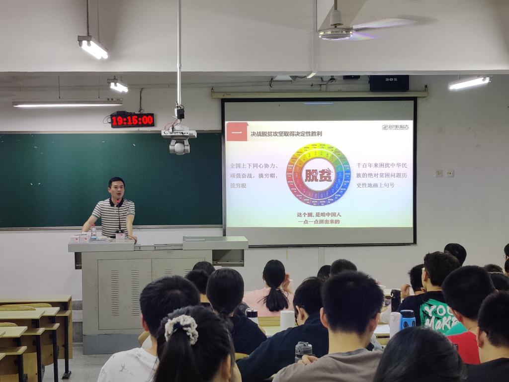 党委副书记蔡滨以“收官“十三五”实现新跨越”为题,通过生动的视频和形象的图片,辅以充分详实的数据,清晰阐述了中国共产党的坚强领导是中国今日伟大成就的根本保证。同时,他告诫同学们要铭记党的历史,把握当下,努力学习专业基本功,树立远大的理想,培养辩证思维能力,为社会主义现代化建设添砖加瓦。