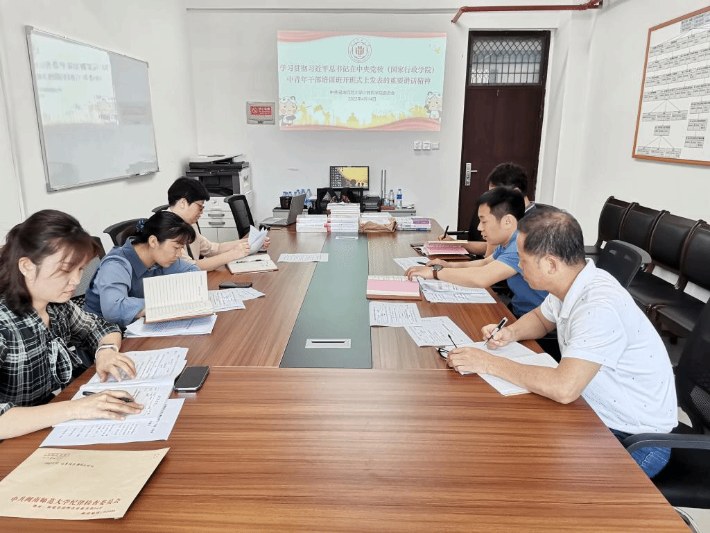 4月14日,太阳成集团tyc522cc党委理论学习中心组召开学习会议,学习贯彻“习近平总书记在2022年春季学期中央党校(国家行政学院)中青年干部培训班开班式上的重要讲话”精神。学习会议由学院党委书记祁超主持。