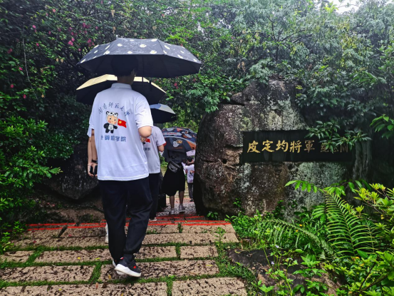 返程的路途虽遥远,实践团成员们的热情却丝毫未减。在返程途中实践团来到了皮定均将军纪念园,从山脚慢步上行,听着讲解员讲解皮定钧将军的生平——“一生戎马行,丹心为人民",看着纪念碑上岁月的痕迹,实践团成员的思绪仿佛回到了那个艰苦的年代,对革命先烈们崇敬和缅怀之情油然而生。