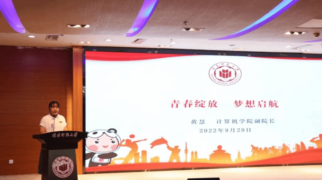黄慧代表学院全体师生对2022级新同学表示热烈欢迎和诚挚问候。她指出无论是从高中到大学,还是从本科到研究生,同学们都面临着重要的人生转折。未来大家将与信息技术领域紧密相连,并深刻体会大数据、云计算、虚拟现实等领域的瞬息万变。我们要顺势而为,抓住机遇,让自己的人生大放异彩!她希望同学们做到:一、修身以正、正心以诚。能关注自身的精神成长,实现积极的人格、坚定的信念、至善的德行,成为有大爱、大德、大情怀的人。二、学业求精、学问求真。学习上不固守一种思维模式,不再局限于记住和理解,让自己和老师同学成为相互激发、相互学习的同行者,让知识与灵感尽情碰撞,从而产生新的创意、新的思路。三、内化于心、外化于行。立足现实,放眼未来,珍惜时间,不断充实自我,才更好地将个人的知识技能与国家的发展紧密结合。四、志存高远、胸怀家国。希望同学都能把自己的梦想与国家的发展紧密结合在一起,热爱自己的专业,以满腔的热情,高度的信心和责任感,在这座美丽的校园里汲取养分、踏实学习、收获知识,快乐成长!