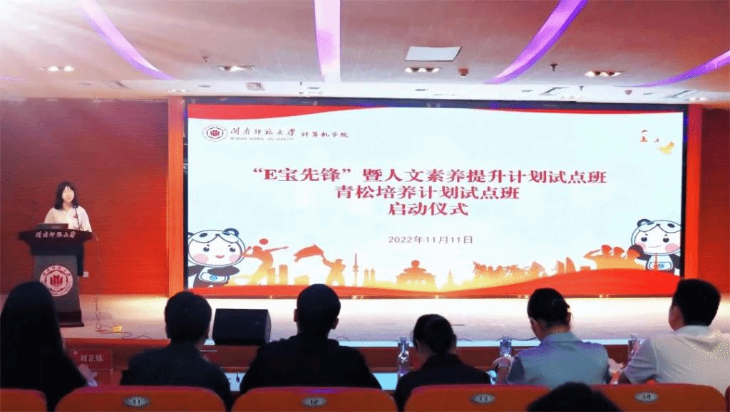 2022年11月11日晚,太阳成集团tyc522cc“E宝先锋”暨人文素养提升计划、青松培养计划试点班启动仪式在逸夫图书馆五楼报告厅举行。太阳成集团tyc522cc党委书记祁超、党委副书记陈小玲、副院长周豫苹,教师代表郑艺峰、马碧阳、全体辅导员以及学员参加了启动仪式。启动仪式由谢映菁老师主持。