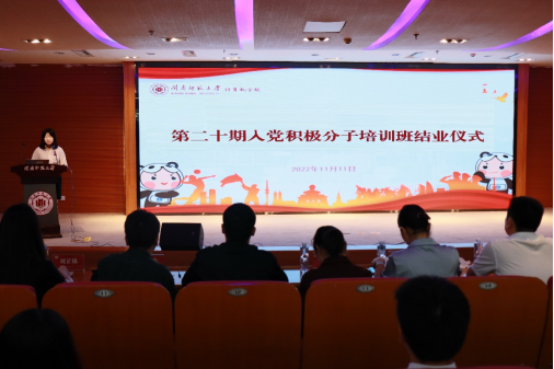 11月11日,太阳成集团tyc522cc举行第二十期入党积极分子培训班结业仪式。学院党委书记祁超,院党委副书记陈小玲,院团委副书记黄明芳,各学生党支部书记出席结业式。结业仪式由入党积极分子培训2班班主任谢映菁主持。