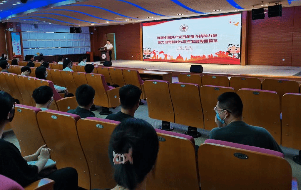 11月11日晚上,学院党委书记祁超在逸夫图书馆五楼报告厅为本科生第四党支部作了题为“汲取中国共产党百年奋斗精神力量,奋力谱写新时代青年发展绚丽篇章”的专题党课。他向大家生动地讲述了中国共产党的百年奋斗路以及百年征程对当代青年的启示。希望同学们坚定理想信念,涵养坚韧意志,坚持自立自强,注重修身养德,在新征程的奋斗中长志气、壮骨气、强底气、固正气,做到心中有信仰,前行有方向,肩上有担当,做事有敬畏,脚下有力量!