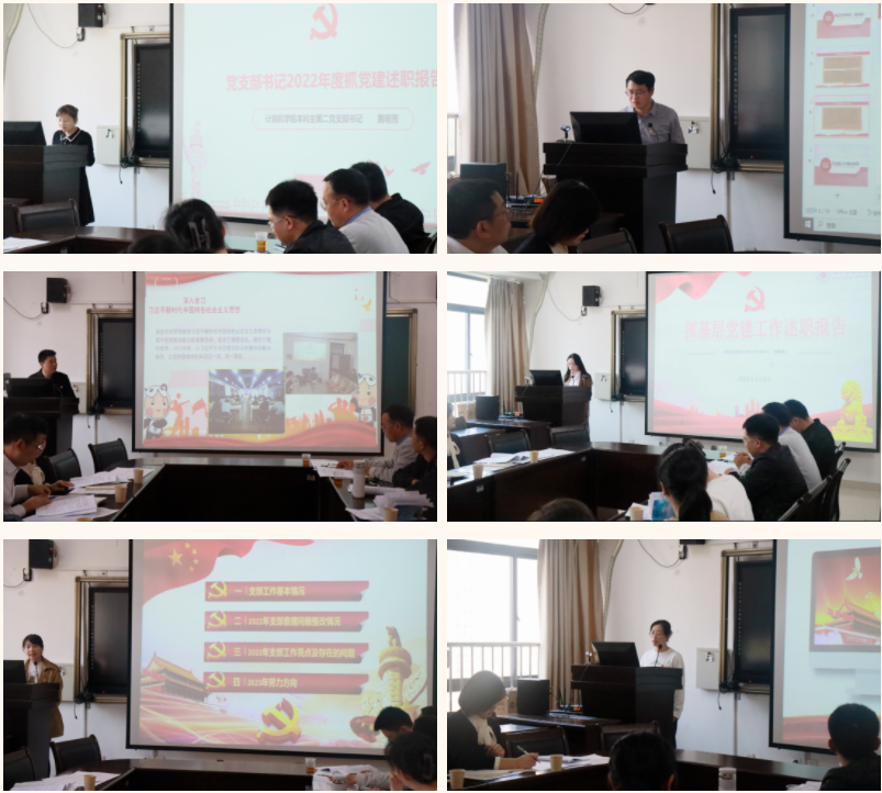 学院党委书记祁超认真听取现场述职并进行点评。他代表学院党委充分肯定了全体党支部书记落实太阳集团责任取得的显著成绩,指出了需要加强改进的问题,对进一步全面推动学院太阳集团提质增效和加强党支部建设提出了思路建议。他强调,今年是全面贯彻落实党的二十大精神的开局之年。各党支部要坚持以全面学习贯彻党的二十大精神为主线,贯彻省委“深学争优、敢为争先、实干争效”行动精神,认真落实校党委“提质增效深化年”部署要求,按照“抓规范、强基础、创特色、提质效”的思路,深入实施学院“党建引领‘E先锋’,‘四心’工程育新人”党建品牌项目,以高质量党建引领保障学院内涵建设高质量发展。一是要基础再夯实,持之以恒把党支部的基本功能锻造得更加扎实。要聚焦学习贯彻党的二十大精神,不断完善党支部理论学习长效化机制,深入落实党支部三会一课、主题党日活动等基本制度,从严从实加强党员发展和教育管理,强化党支部政治功能提升和辐射引领作用,推动党支部标准化规范化建设再上新台阶。二是要融合再紧密,持之以恒把党支部的特色优势培育得更加出彩。要立足党支部党员同志的岗位结构、职称结构、能力结构确定特色培育方向,紧密围绕教书育人、管理服务和成长表率三个维度,加强支部联建,拓展行业共建,创新党建带团建,巩固“一支部一特色”创建成效,让党支部的战斗堡垒作用在落实立德树人、推动事业发展中得到充分彰显。三是要责任再增强,持之以恒把党支部的委员作用发挥得更加有效。要自觉加强党支部委员会自身建设,支部书记发挥领头羊作用,坚持支委分工负责与支部书记统筹协调相结合、清单任务落实与创新自选动作相结合,推动全体支委充分发挥职能作用,切实增强支部委员会的凝聚力和战斗力。