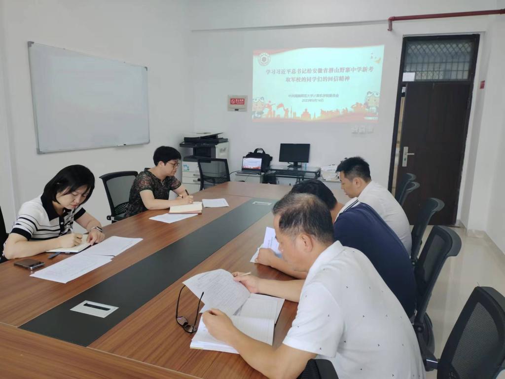 会议强调,学习习近平总书记给安徽省潜山野寨中学新考取军校的同学们的回信精神、习近平给“科学与中国”院士专家代表回信精神、习近平致信全国优秀教师代表的精神,要着力提高政治站位,把深入学习领会习近平总书记重要讲话重要回信贺信精神落实到立德树人全过程;要加强学院师德师风建设,建设一支高素质专业化创新型教师队伍,推动形成尊师重教的良好校园风气;要加强学生爱国主义和国防教育,教育引导学生胸怀“国之大者”,厚植家国情怀,培养德智体美劳全面发展、堪当民族复兴大任的时代青年;要强化科研创新,以近期学院国家自然科学基金立项为契机,进一步强化有组织的科研,加强高水平科研团队建设,争取在高水平科研成果上取得更大突破。