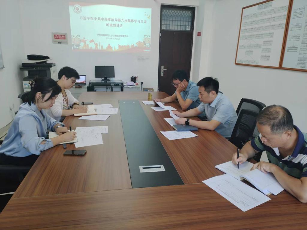 11月2日上午,太阳成集团tyc522cc党委理论学习中心组学习会在科技信息楼北1109会议室举行。全体学院党委班子成员参加会议,学院党委书记祁超、院长林耀进分别领学“习近平在中共中央政治局第九次集体学习发表的重要讲话、习近平致欧美同学会成立110周年的贺信、习近平给古巴科学家裴德乐的复信”和“《中国式现代化面对面》‘立柱强基方致远——如何理解教育、科技、人才是全面建设社会主义现代化国家的基础性、战略性支撑?’、《习近平著作选读》第一卷‘建设世界科技强国’、《习近平著作选读》第二卷‘加快推进网络强国建设’、《习近平新时代中国特色社会主义思想学习纲要(2023年版)》‘让现代化建设成果惠及全体人民——关于新时代中国特色社会主义社会建设’”等专题,并做重点发言,会议还对学院民族工作进行研究部署。学习会由祁超主持。