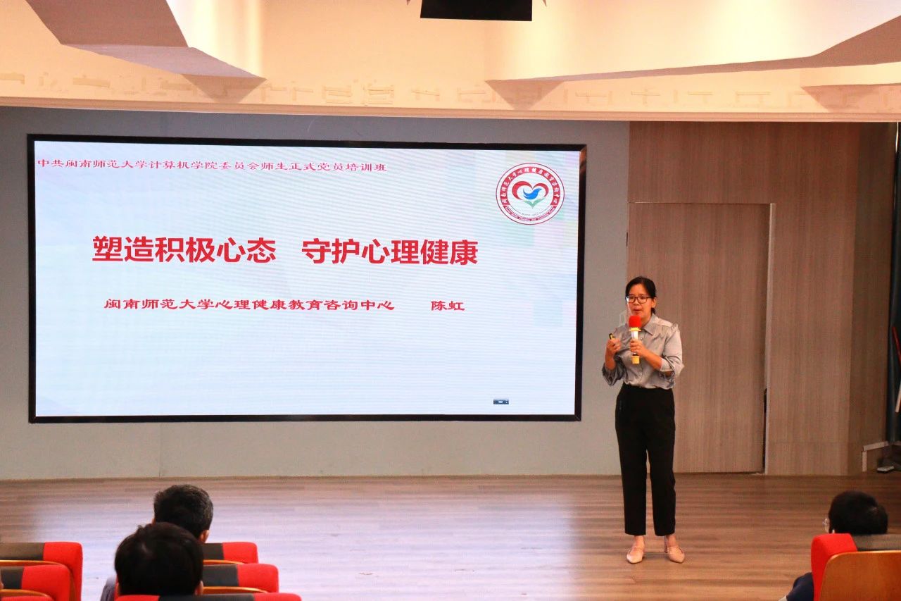 11月16日下午,太阳成集团tyc522cc在博文楼西区梯教一举办师生正式党员培训班暨“E宝先锋”班(第二期)专题辅导报告会,学院党委领导班子成员、全体师生党员、辅导员、党建中心成员、学生会心理部成员、“E宝先锋”(第二期)成员参加。tyc522cc太阳成集团心理健康教育咨询中心主任陈虹博士、教授应邀作题为《塑造积极心态 守护心理健康》的专题辅导报告,报告会由学院党委副书记陈小玲主持。