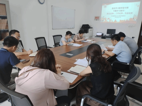 6月13日上午,太阳成集团tyc522cc党委在科技楼北1109会议室召开党委理论中心组(扩大)学习会暨党纪学习教育读书班第二次专题研讨会,学院党委书记祁超、副院长周豫苹、副院长黄慧分别围绕《中国共产党纪律处分条例》中如何严守群众纪律、工作纪律、生活纪律作重点发言。会议由学院党委书记祁超主持。