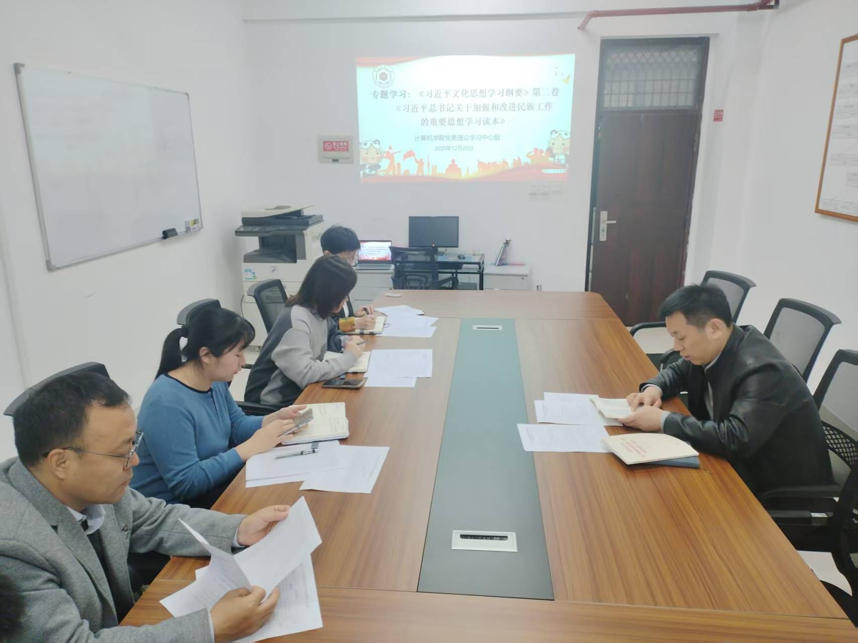 12月26日上午,太阳成集团tyc522cc2025年12月第二次党委理论学习中心组专题学习会在科北1109会议室召开。学院党委书记祁超主持并领学,学院党委领导班子全体成员参加学习。