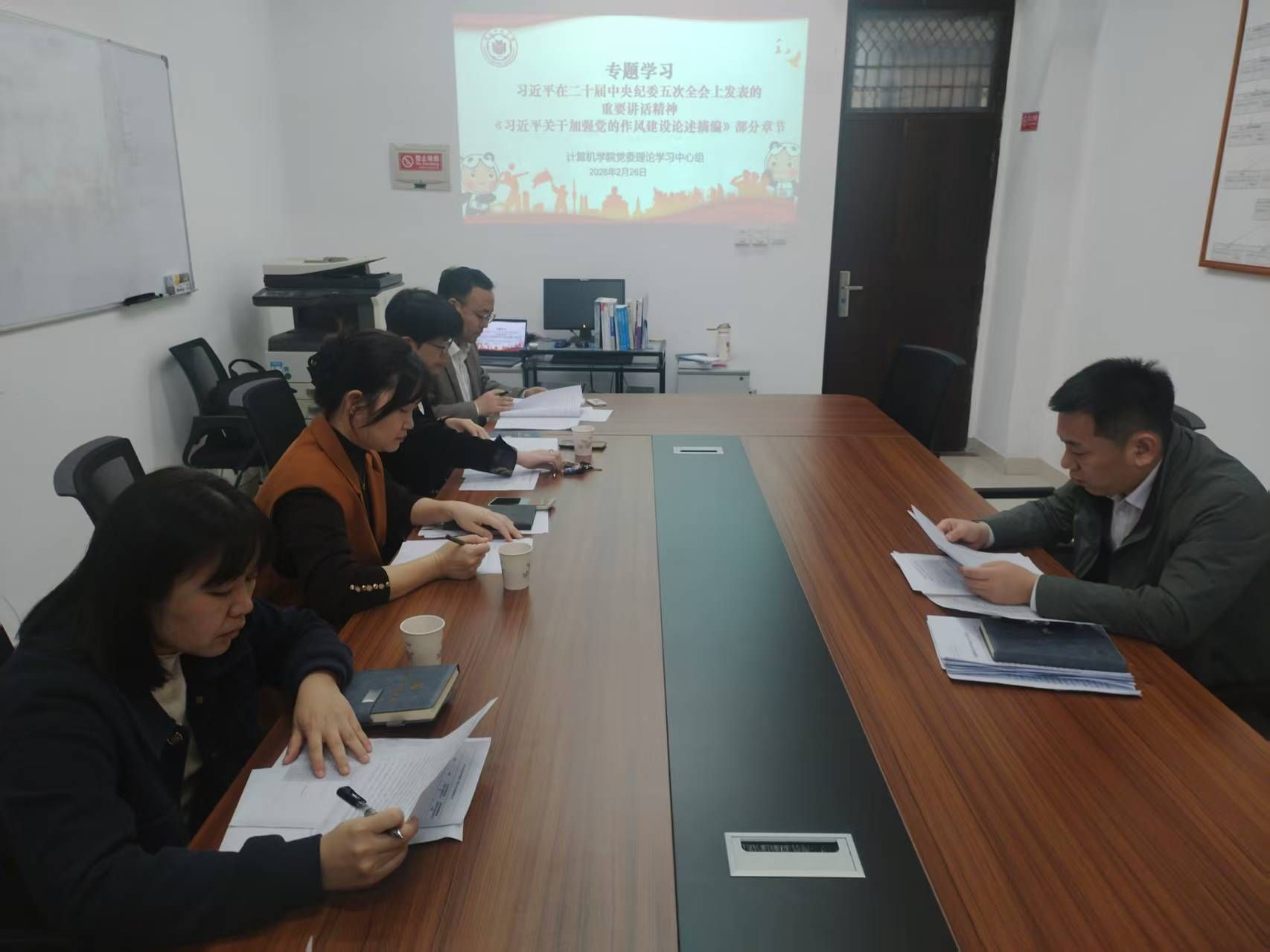 2026年2月26日,太阳成集团tyc522cc党委理论学习中心组召开专题学习会,专题学习习近平总书记在二十届中央纪委五次全会上的重要讲话精神、《习近平关于加强党的作风建设论述摘编》部分章节。学院党委领导班子成员参加学习,学院党委书记主持会议并领学。