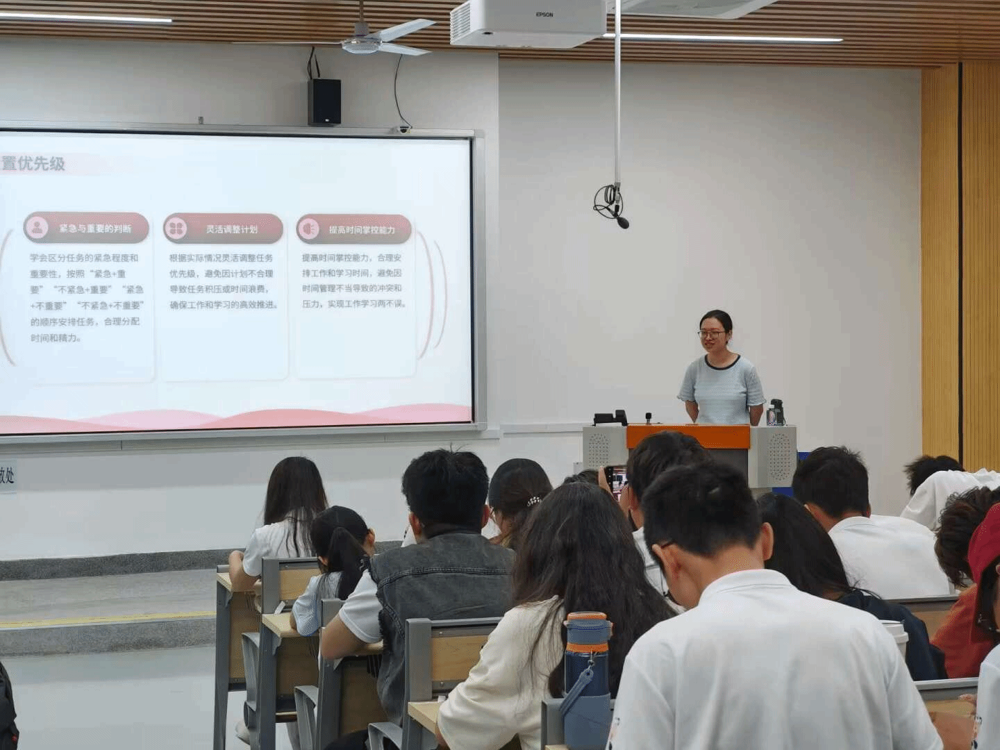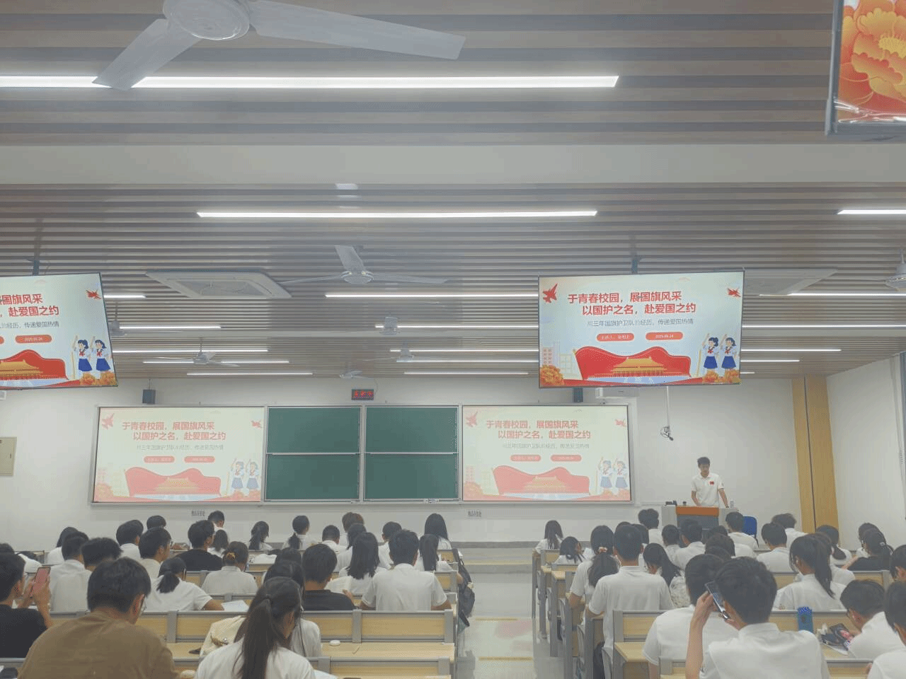 八位学生干部接力而上,他们分享校园工作中沉淀的经验,以青春热忱与实干担当,开展不同的主题分享 。
